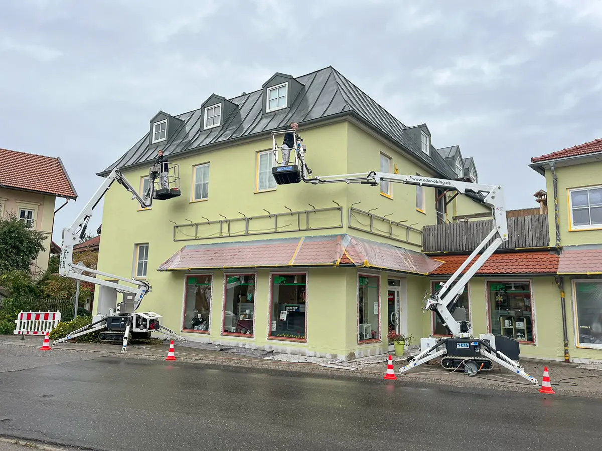 Wir übernehmen Fassadenanstriche, Renovierungen sowie Ausbesserungsarbeiten mit hochwertigen Materialien und moderner Technik. Dabei ist uns besonders wichtig möglichst mineralische Anstrichsysteme zu verwenden. Wir achten auf eine sorgfältige Untergrundvorbereitung, langlebige Farben und eine saubere Ausführung.